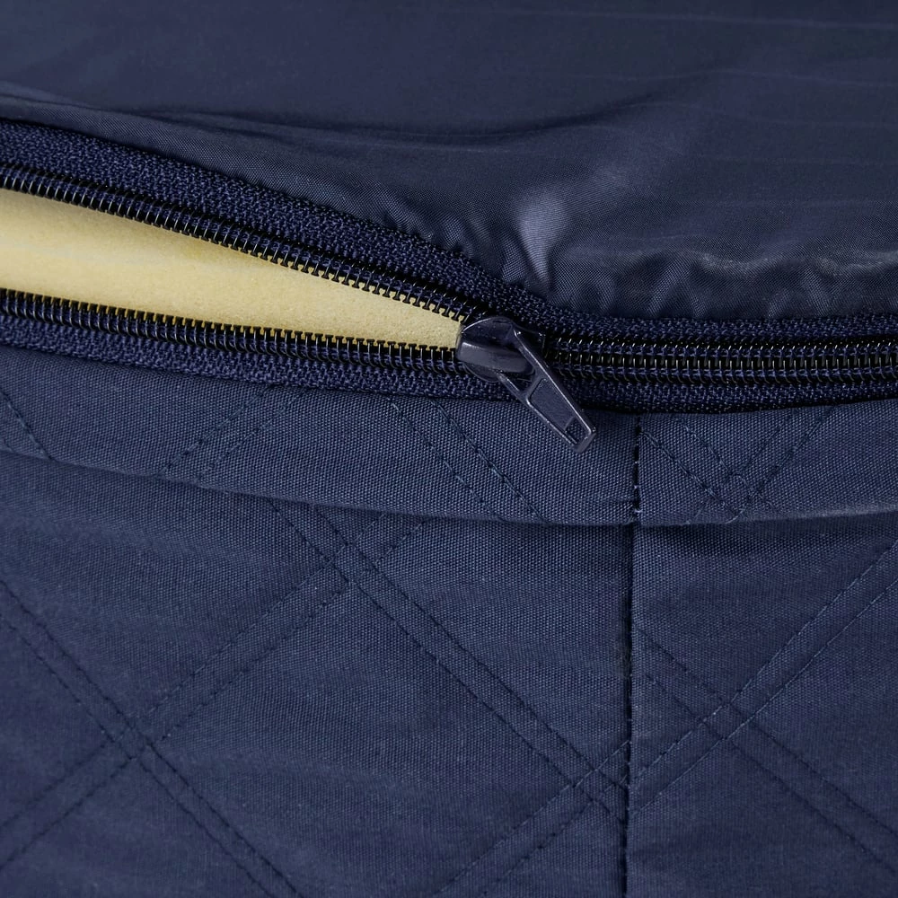 - Reversible sleeping surface features an attractive textured blue quilted-weave or soft faux shearling