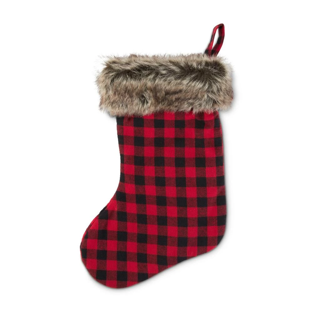 - Made of buffalo check flannel trimmed with faux fur to complement its neighbouring stockings