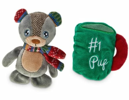 - Petco Holiday Tails Bear and Mug Plush Dog Toy sparks your pup’s interest in a game of fetch